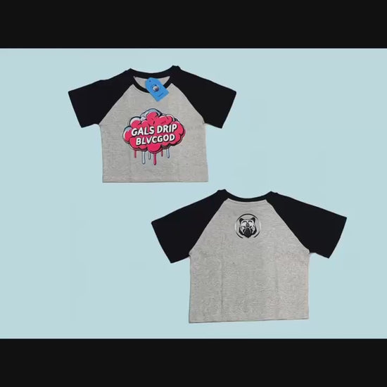 GALS DRIP BLVCGOD CROP TEE (BLVC & GREY)